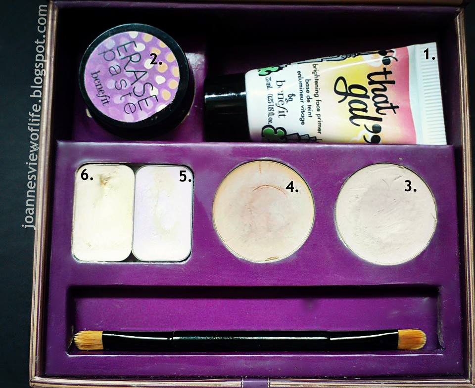 Kao što možete videti, u jednom ''dnevniku'' upakovanom na vrlo lep način i sa ogledalom nalaze se dva korektora za bubuljičice i slične nepravilnosti koje želite da pokrijete (označeni su brojevima 3 i 4), Erase pasta koja je za podočnjake i označena je brojem 2, roze korektor koji služi za posvetljivanje unutrašnjeg dela oka - suznog kanala (označen brojem 5), žuti - Lemon-aid je za kapke, pokriva vene i izjednačava boju kože i na taj način priprema oko za dalje šminkanje (označen je brojem 6) i poslednji je, oni kažu prajmer ''that gal'' ali po meni više i bolje služi kao highlight-er (iluminator) koji daje licu svetlucavost, ističe. Stavlja se na sredinu nosa, vrhove obraza, na vrh gornje usne i ispod obrve, označen je brojem 1.